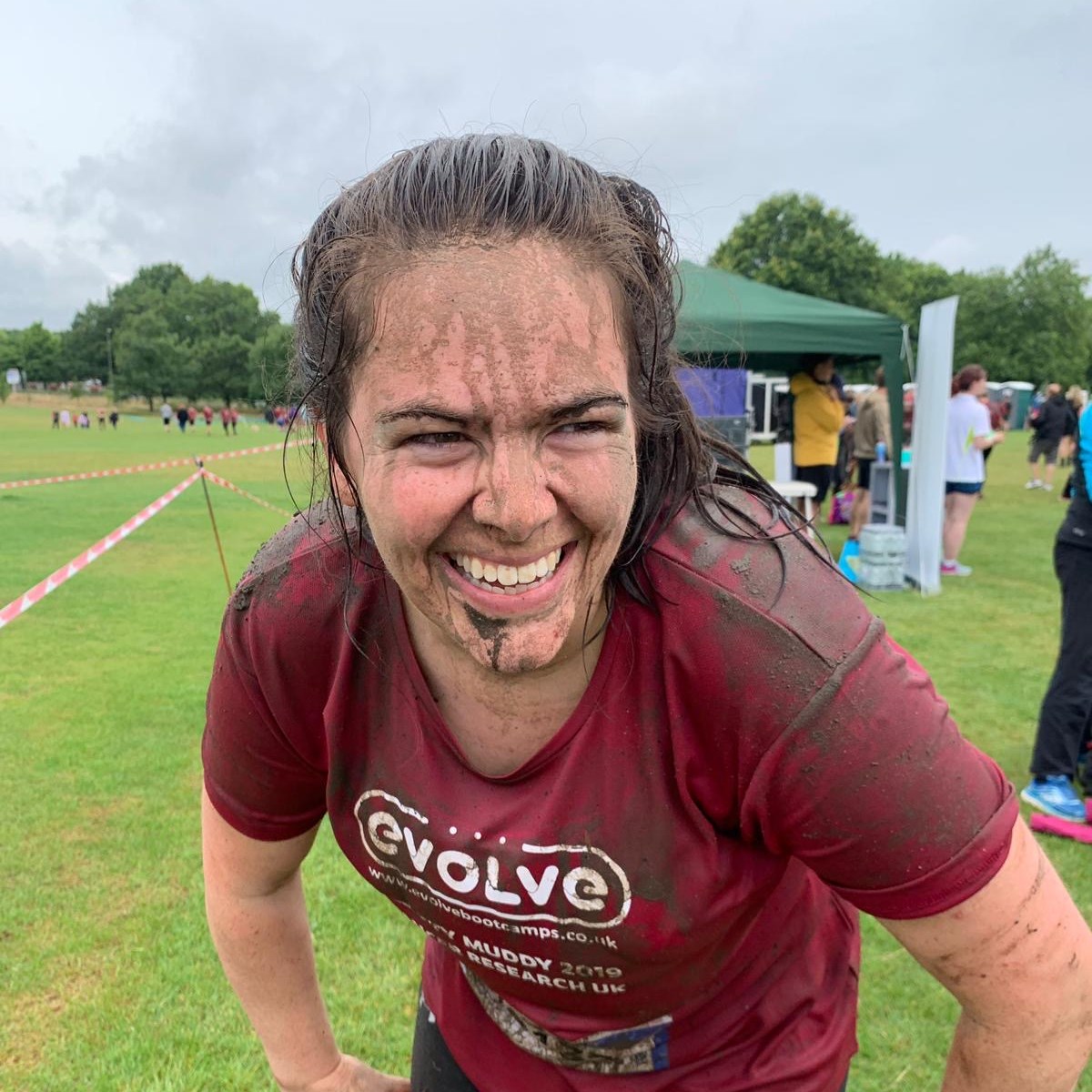 "It was so much fun! I highly recommend it for any fitness level and for anyone who doesn't mind getting 'a little muddy'. There were inflatable obstacles throughout a 5k run in total, challenging both your athletic and cardio abilities. I completed it with my boot camp group. I have been an active member of Evolve Bootcamps since the beginning of this year and have never looked back since. They are so much fun! We entered as a large group, as crazy as we all are; raising an amazing £1,300! Loved every minute! Still washing the mud off now!” Well done Fee, amazing achievement!